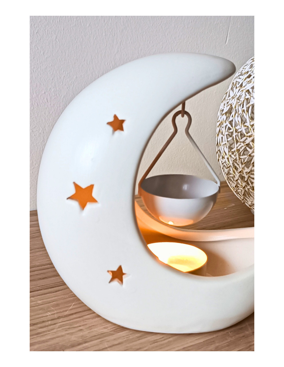 Le brûle parfum Lune s'utilise avec une bougie chauffe plat.